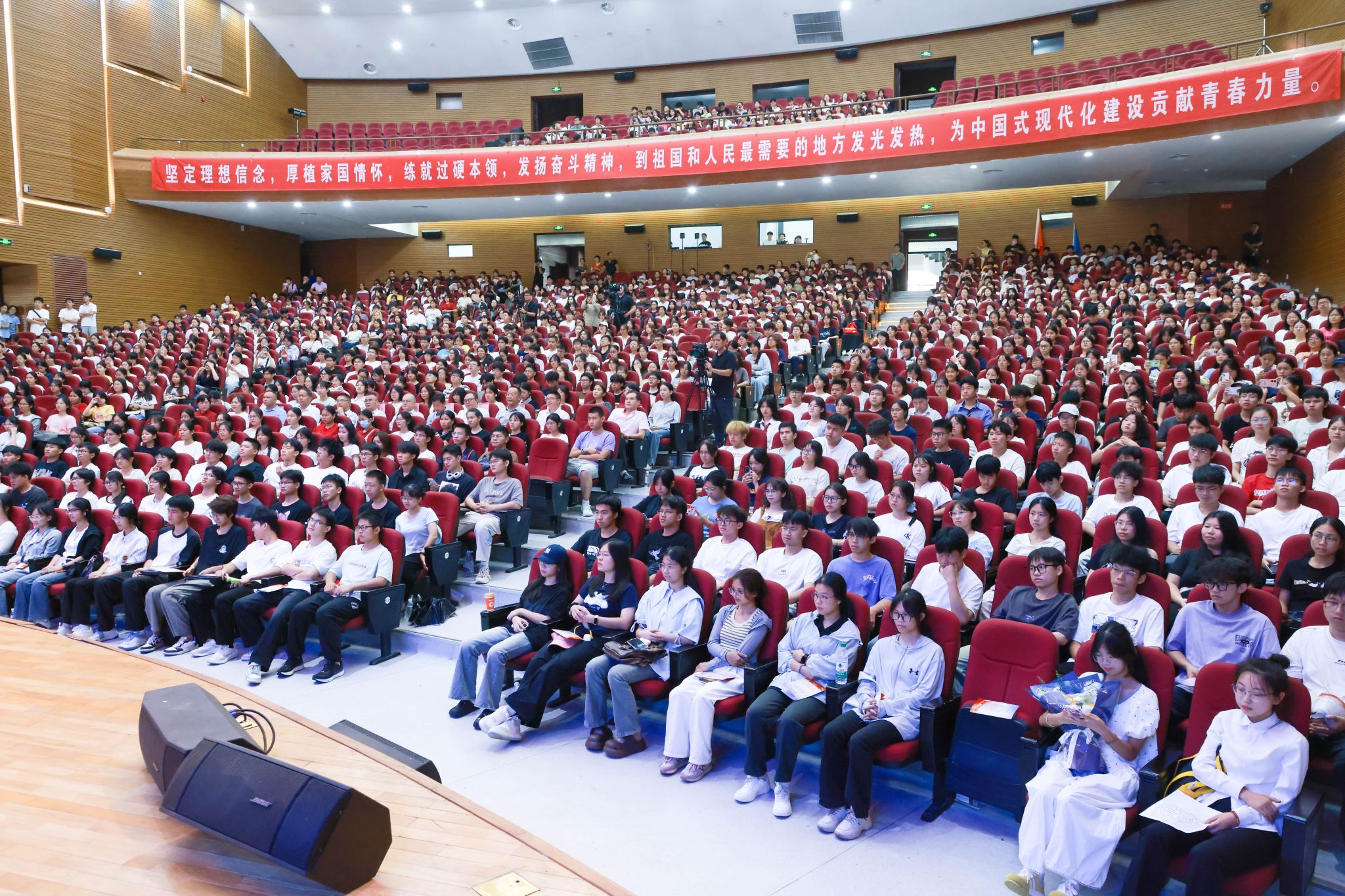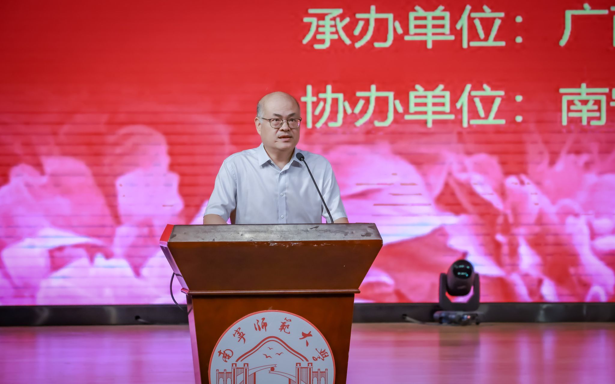 此次活动采取线上、线下的方式进行,相关学院负责人和1200余名2025级新生代表现场参加了活动,其他教职工和新生通过南宁师范大学视频号线上观看了活动直播。