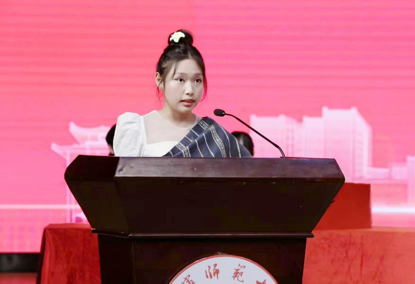 来自越南的2025级研究生黄氏金舒作为新生代表发言,表达了对中国文化与学术环境的热爱与向往,以及在新的起点上不懈奋斗、深耕专业、实现梦想的坚定决心。