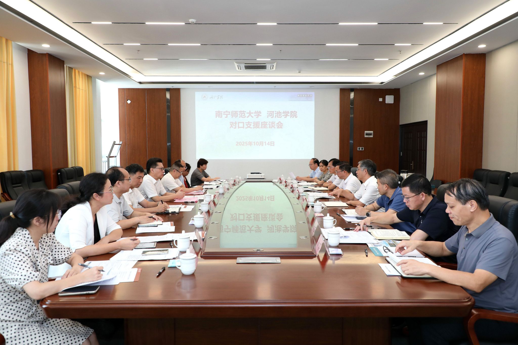 马少健介绍了河池学院的基本情况。他表示,进入新发展阶段,河池学院正努力探索经济欠发达地区地方本科高校发展之路,期待我校在后续的对口支援工作中能进一步加强资源共享,为河池学院的发展之路持续注入新动力。