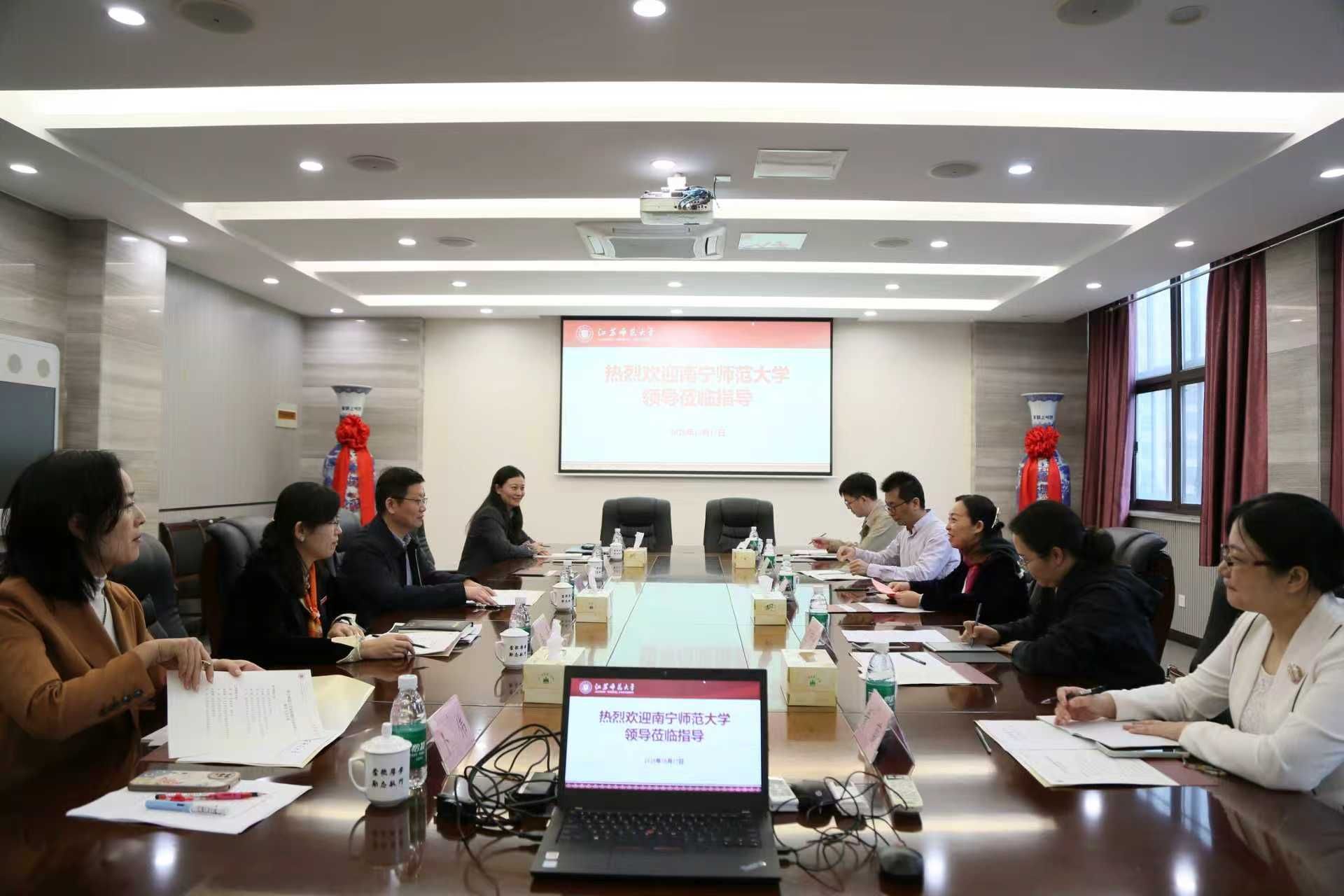龙妮娜对江苏师范大学的热情接待表示感谢,对学校取得的办学成就表示由衷的祝贺。龙妮娜表示,两校作为历史悠久的地方师范大学,在发展历史与办学特色上有许多相似之处,许多工作具有很好的学习借鉴意义,特别是针对此次学习调研的重点,江苏师范大学的好经验、好做法给了我校很好的榜样示范和重要启示,期待今后能与江苏师范大学建立更加紧密的联系,在交流互鉴中同向同行,助力我校办学水平迈上新台阶。