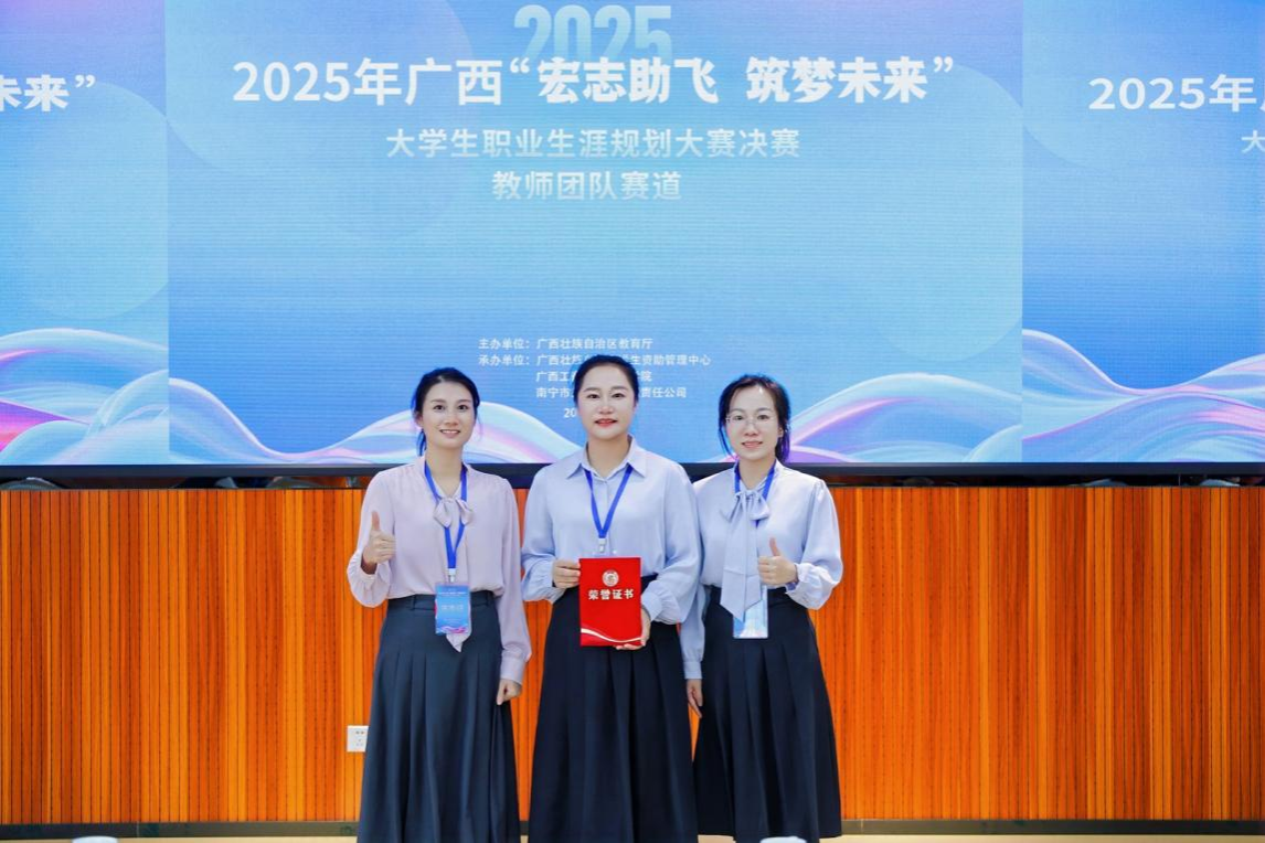 10月26日,由广西壮族自治区教育厅主办的2025年广西“宏志助飞 筑梦未来”大学生职业生涯规划大赛决赛在广西工商职业技术学院圆满落幕,我校师生在决赛中双双斩获银奖。