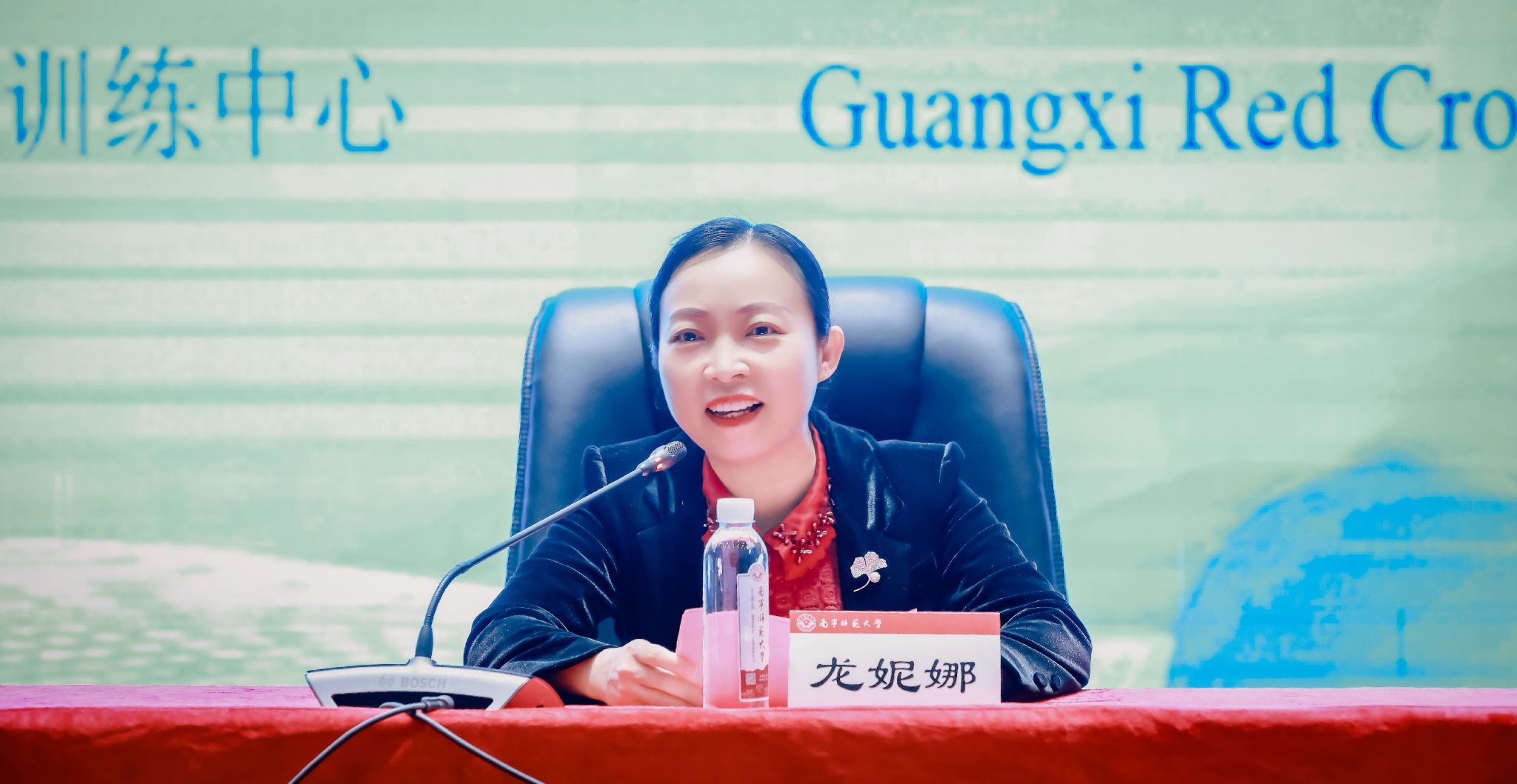 龙妮娜在致辞中指出,南宁地处中国—东盟交流合作的前沿,南宁师范大学作为一所具有开放胸襟和国际视野的高校,始终积极推动与东盟国家的教育文化交流。她强调,“第一响应人”培训项目是学校深化与东盟国家务实合作、共筑区域安全防线、促进民心相通的重要实践,“它超越了语言与文化的边界,用守护生命的共同信念,将我们紧密联结在一起”。她希望同学们珍惜学习机会,掌握扎实技能,未来成为危难时刻挺身而出的生命守护者。