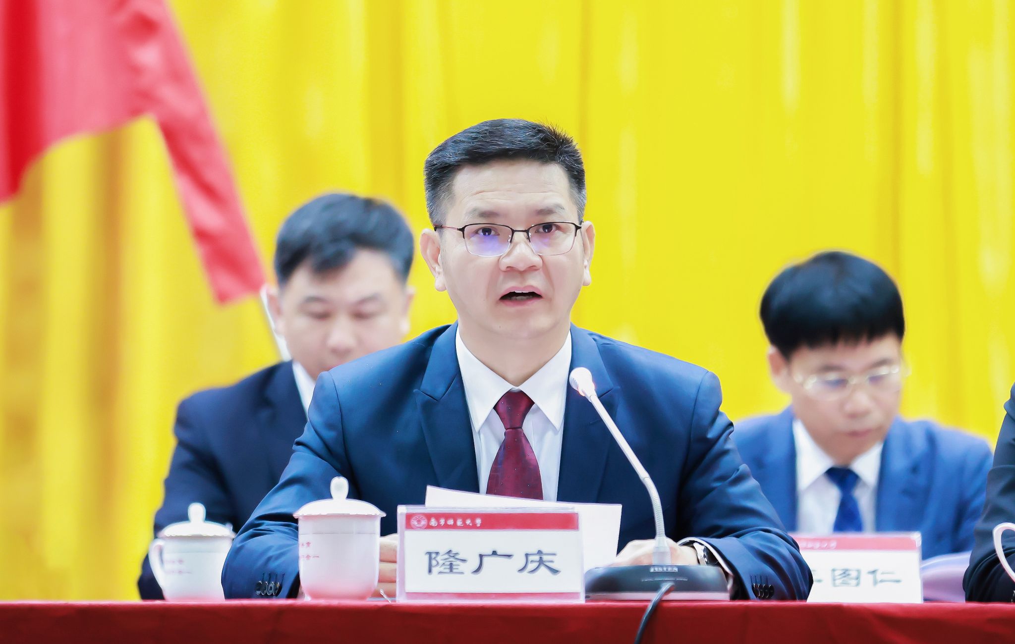 覃壮才代表自治区党委教育工委向大会的召开表示热烈的祝贺。他指出,南宁师范大学党委始终团结带领全校师生凝心聚力、守正创新、奋发进取,在人才培养、学科建设、科学研究、社会服务、文化传承创新等各项事业取得新进展,为服务广西经济社会发展和推动高等教育事业作出了重要贡献。他希望站在高质量发展新起点,南宁师范大学要把牢办学方向,在坚持和加强党的全面领导上担当新使命;守牢教育初心,在全面落实立德树人根本任务上体现新作为;扛牢责任担当,在深度融入和服务广西发展大局上实现新成效,为奋力谱写中国式现代化广西篇章作出新的更大贡献。他表示,自治区党委教育工委将一如既往地大力支持南宁师范大学各项工作,助力学校在新时代壮美广西建设实践中交出令人更加满意的时代答卷。