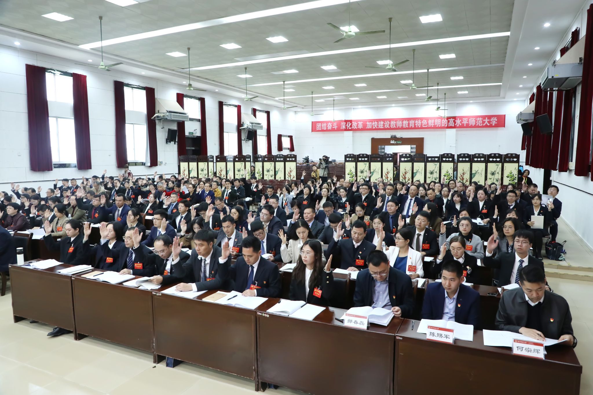 大会以举手表决的方式通过了《中国共产党南宁师范大学第一次党员代表大会关于中国共产党南宁师范大学委员会报告的决议》和《中国共产党南宁师范大学第一次党员代表大会关于中国共产党南宁师范大学纪律检查委员会工作报告的决议》。