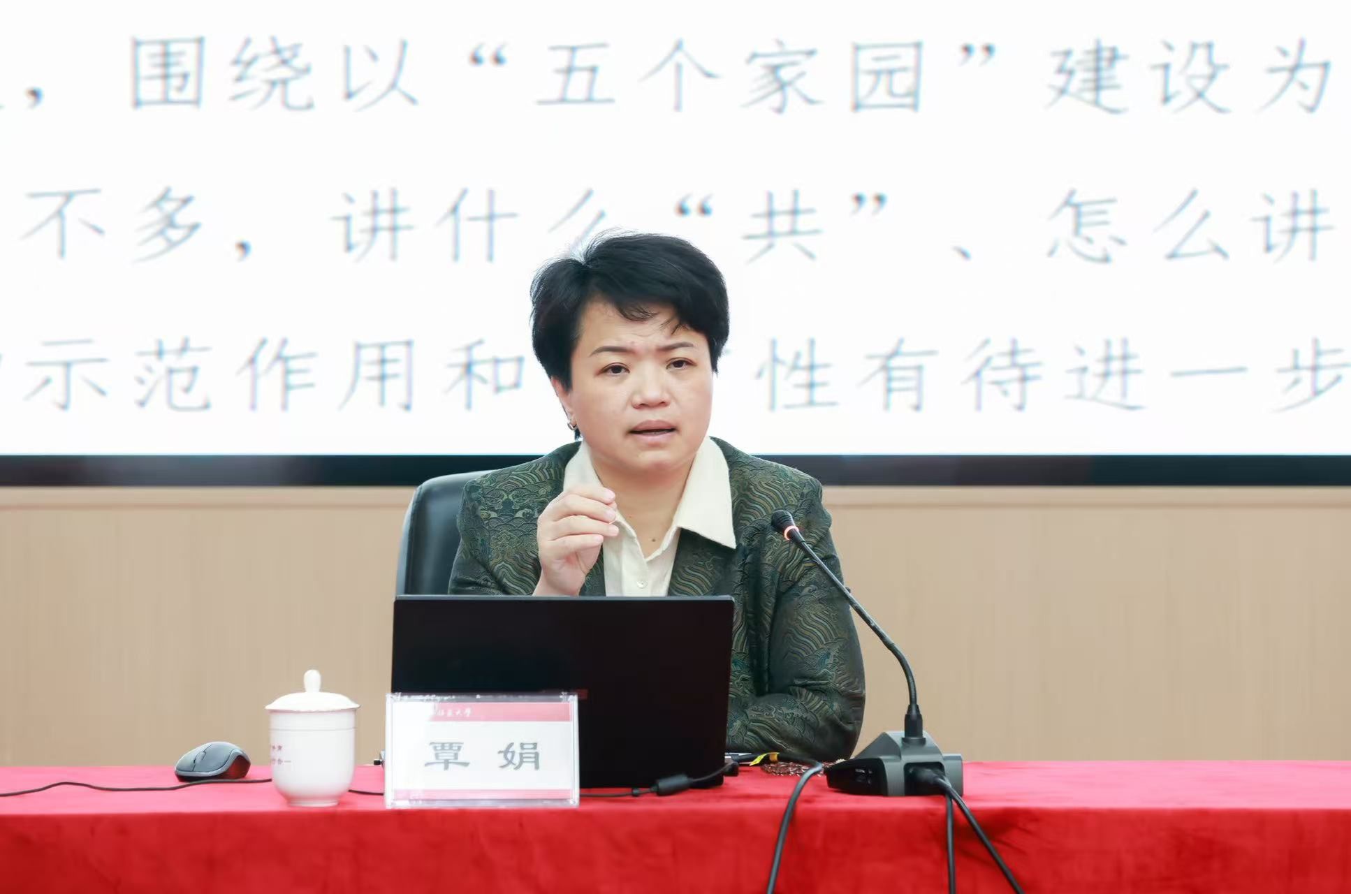 吴汉时以《紧紧围绕铸牢中华民族共同体意识主线,发挥高校优势促进各民族广泛交往交流交融》为题深入解读党中央决策部署,并就高校如何发挥优势,把握“四种关系”、深化“四个与共”“五个认同”教育提出具体指导。覃娟以《高校铸牢中华民族共同体意识的理论与实践》为题,系统阐释了新时代民族工作的重大意义和实践路径。
