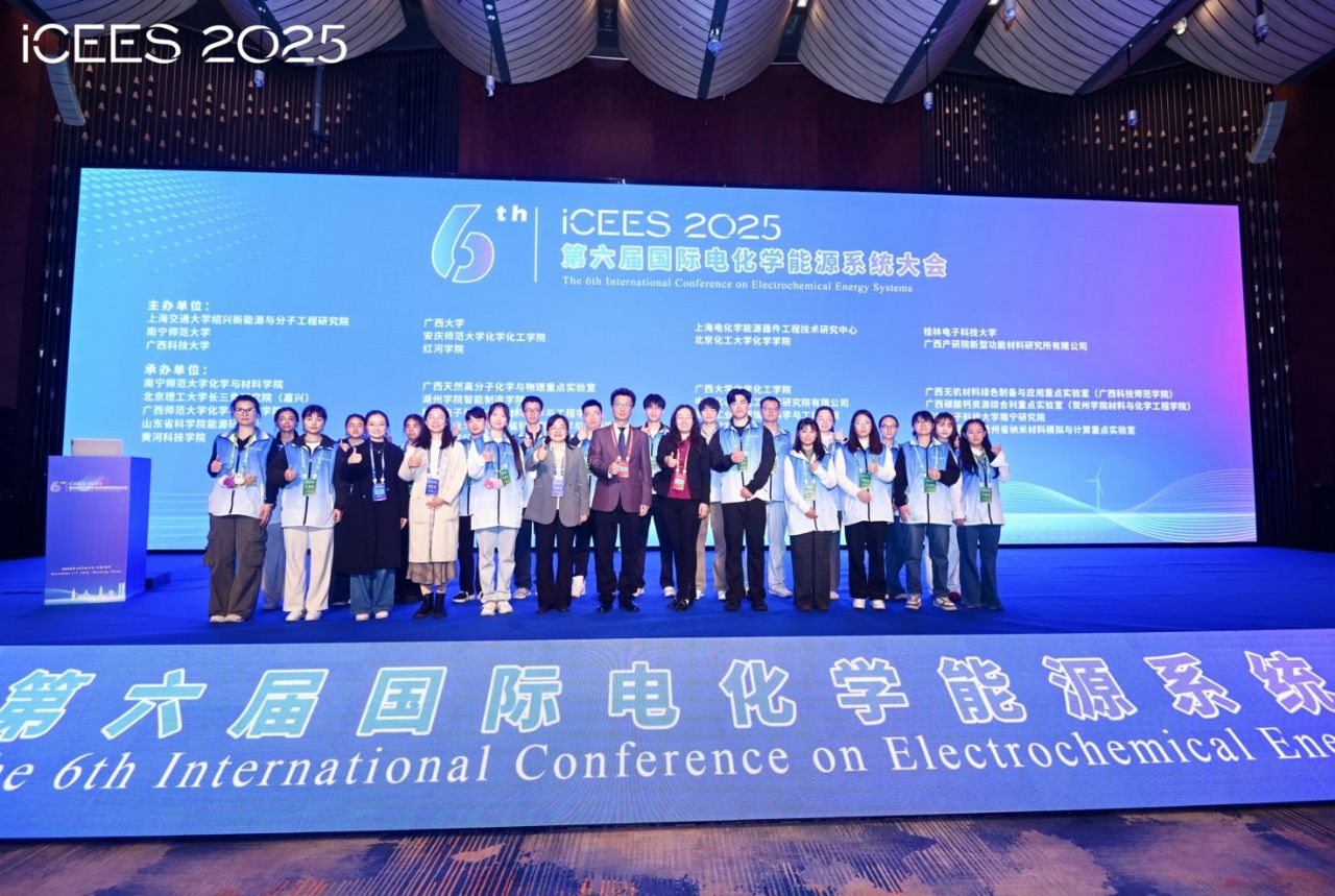 12月5日至7日,第六届国际电化学能源系统大会(ICEES2025)在南宁顺利召开。本次会议由上海交通大学绍兴新能源与分子工程研究院、南宁师范大学等单位联合主办,我校化学与材料学院、广西天然高分子化学与物理重点实验室等机构共同承办。大会邀请了赵天寿、陈国华、林文锋、骆静利四位院士在内的近30名知名学者作报告。我校校长隆广庆出席大会并致辞。