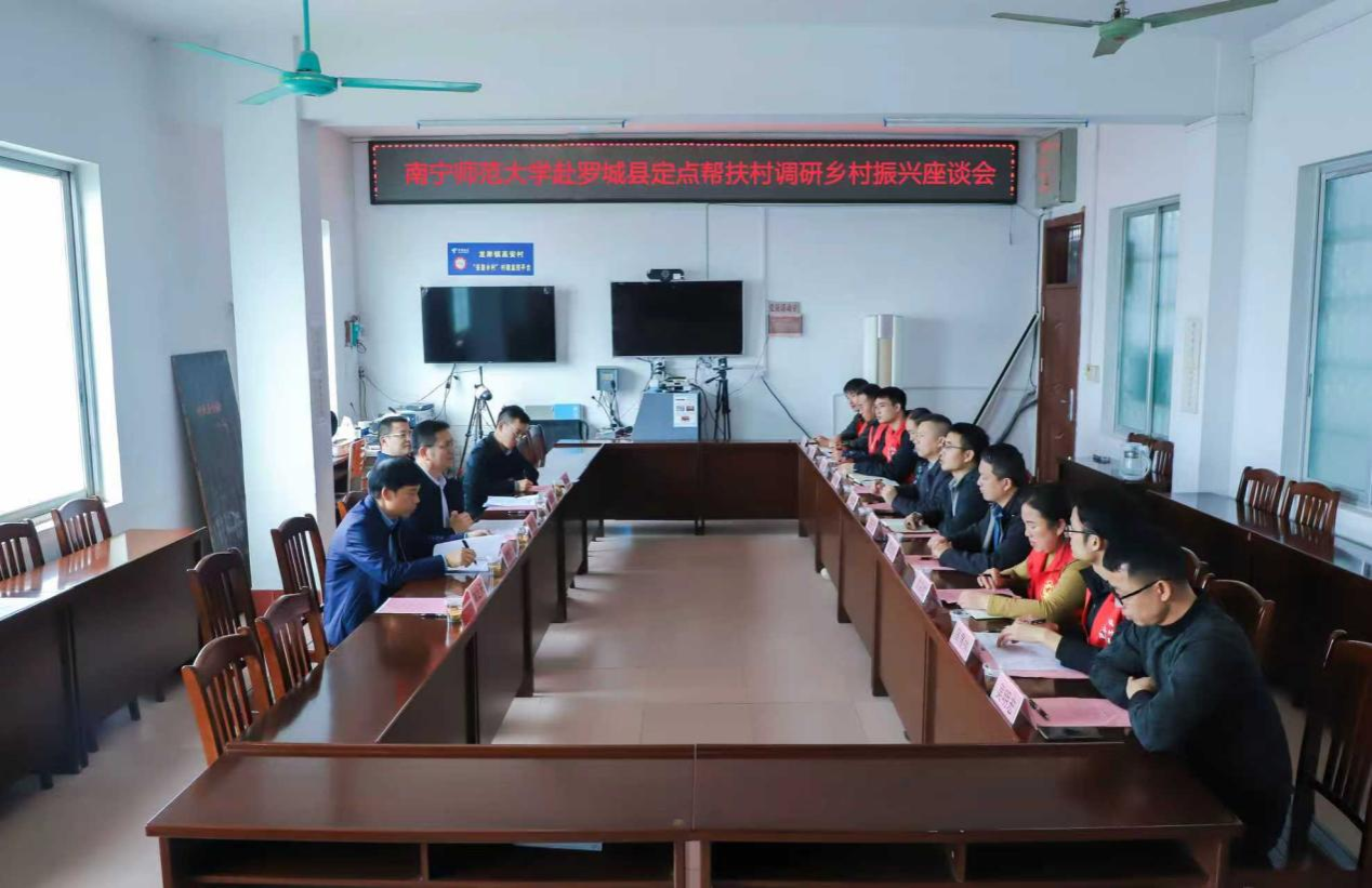 隆广庆一行在高安村组织召开乡村振兴工作座谈会。会上,我校派驻罗城县的驻村干部分别汇报了驻村帮扶工作的推进情况。龙岸镇镇长覃国胜介绍了龙岸乡村振兴工作有关情况。罗城县副县长蓝天宝代表县委、县政府,对学校一直以来的倾力帮扶表示诚挚感谢,并希望学校在产业发展、教育帮扶、校地合作等领域加大帮扶力度。