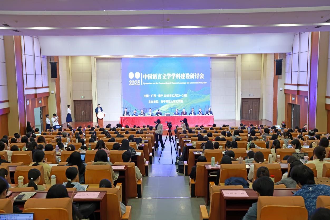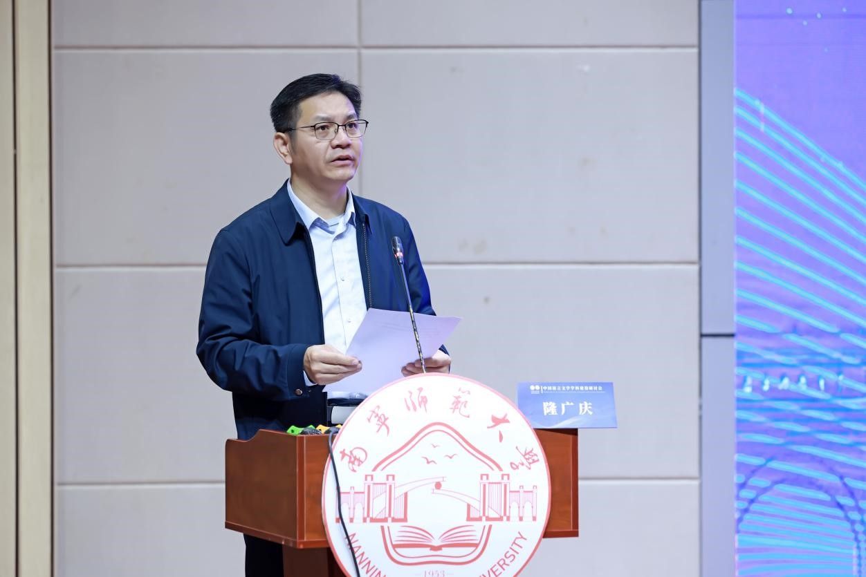 12月23-24日,由南宁师范大学文学院主办的“2025年中国语言文学学科建设研讨会”在五合校区举行。学校校长隆广庆出席研讨会开幕式并致辞。来自区内外20余所高校、科研院所及文化机构100余名专家学者齐聚一堂,共商中国语言文学学科发展大计。学校相关职能部门领导,各学院领导、文学院师生代表参加了本次研讨会。