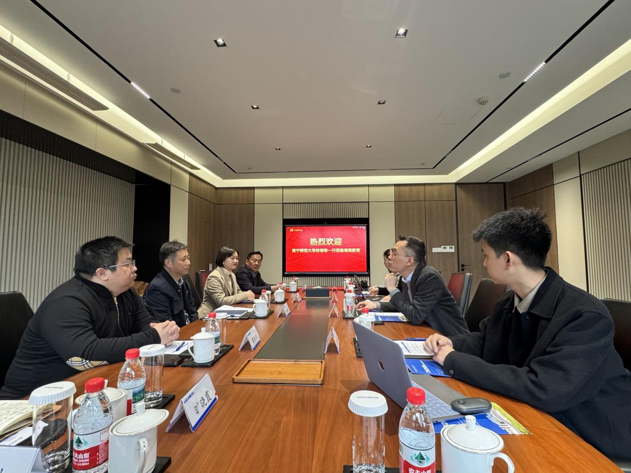 当天下午,张松涛一行赴海亮教育科技服务集团开展交流。海亮教育科技服务集团副总裁何浩及相关部门负责人热情接待了张松涛副校长一行。在何浩的带领下,张松涛一行参观了海亮集团展厅,详细了解了公司发展历程和企业文化。座谈会上,张松涛副校长感谢海亮教育科技服务集团长期以来对学校发展给予支持,强调本次访企拓岗旨在深化校企合作,共同培育适应行业需求的高素质人才,促进毕业生更高质量就业。双方回顾了既往在人才招聘方面的良好合作,聚焦“人工智能赋能教育”与“精准人才供给”两大主题,就共建智能教育人才培养体系、联合开展科研与产业创新、畅通人才共育与就业直通渠道等内容进行深入交流,达成深度合作意向。双方一致同意加快推动合作项目落地,促进校企合作向更广领域、更深层次迈进,共同培养适应智能时代发展需要的创新型、复合型人才。