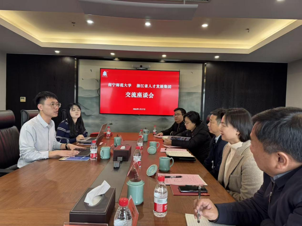 1月27日上午,张松涛带队到浙江省人才发展集团开展访企拓岗座谈交流活动,浙江省人才发展集团领导及相关部门负责人热情接待了张松涛副校长一行。座谈前,学校一行参观了集团展厅。座谈会上,张松涛副校长介绍了学校办学定位、学科建设、人才培养及2026届毕业生整体情况。并就共建人才培养与职业发展协同机制、完善就业信息共享与招聘对接渠道、拓展人才研究与社会服务合作空间等议题展开深入研讨,明确了后续合作方向与推进路径,达成广泛合作意向。