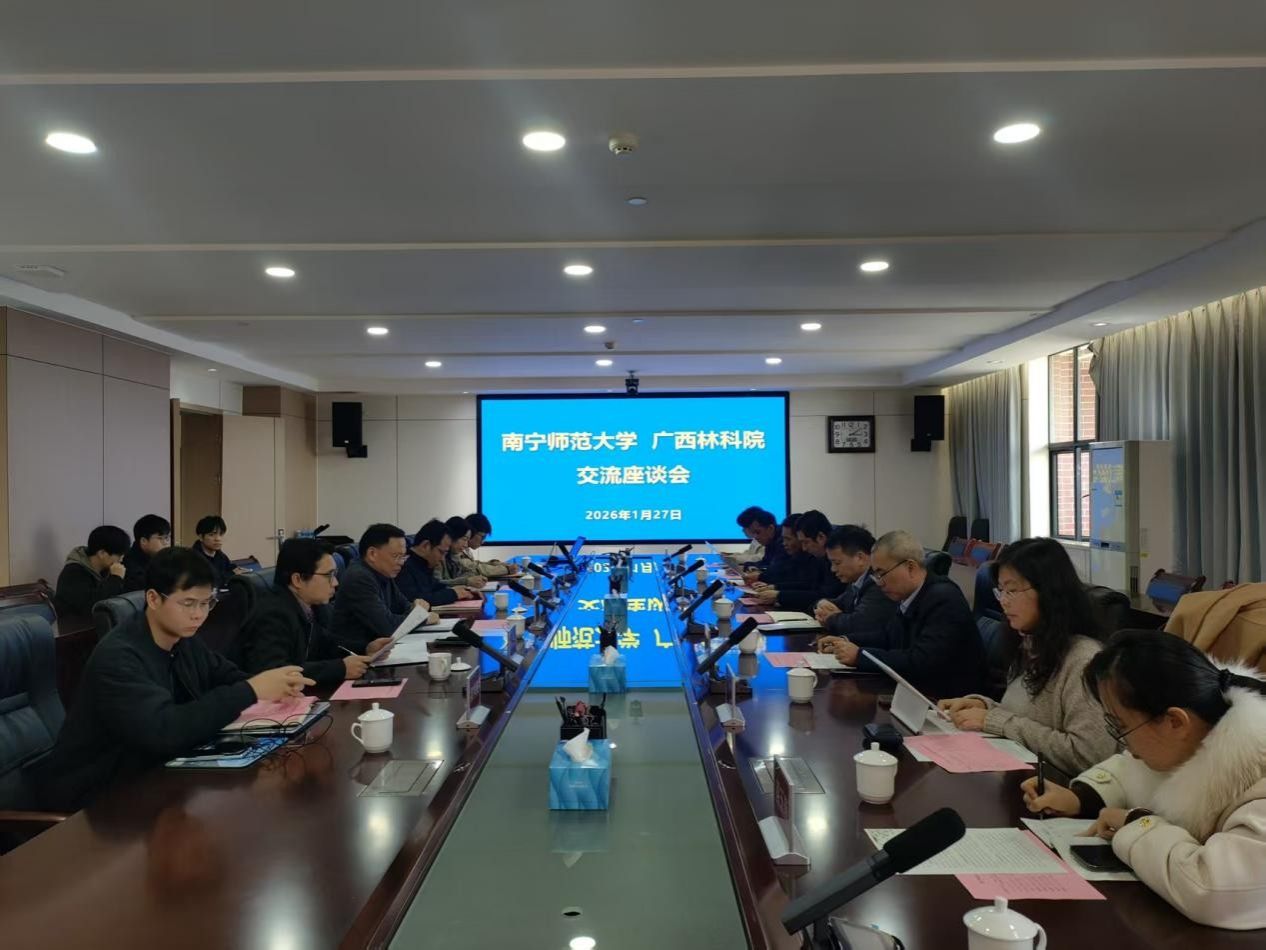 卢远针对双方交流过程中提出的问题作出了回应,并提出四个合作方向。一是应尽快签署合作协议,共建人才培养基地,聘请广西林业科学研究院的高水平科研人员担任我校硕士研究生导师,共同培养地理、自然资源、生态和人工智能等学科专业的研究生;同时组织优秀本科生前往广西林业科学研究院开展实习实训活动,培养契合行业需求的人才,拓宽毕业生就业途径。二是南宁师范大学在广西自然资源领域拥有长期的科研积累和成果沉淀,期望能与广西林业科学研究院在综合科考工作中开展合作,助力完成科考任务。三是我校将在现有合作基础上,整合科研力量,组建科研团队融入广西林业实验室的研究工作,进一步深化双方的合作。四是依托我校与东盟国家多所院校的合作基础,积极推动与广西林业科学研究院共同开展东盟林业人才培养工作,联合开展面向东盟国家的技术培训、标准共建与人才交流项目。
