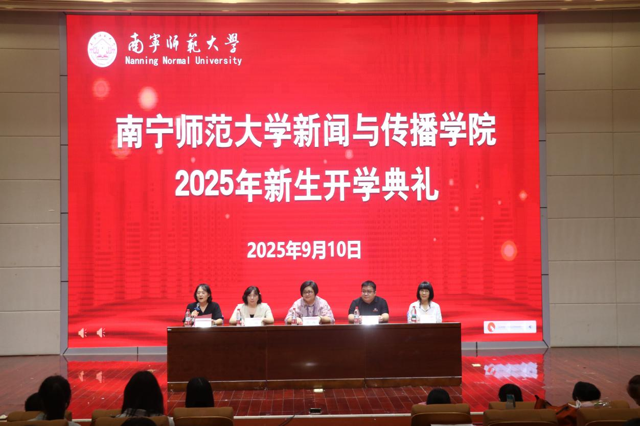 9月10日晚,新闻与传播学院2025级新生开学典礼于五合校区文综楼114报告厅举行。学院党委书记聂卉、院长梁颖涛、党委副书记黄敏、副院长周飞伶、院长助理宋丽丽到场出席,学工办辅导员、2025级新生班班主任以及2025级全体新生参加开学典礼。开学典礼由院长助理宋丽丽主持。