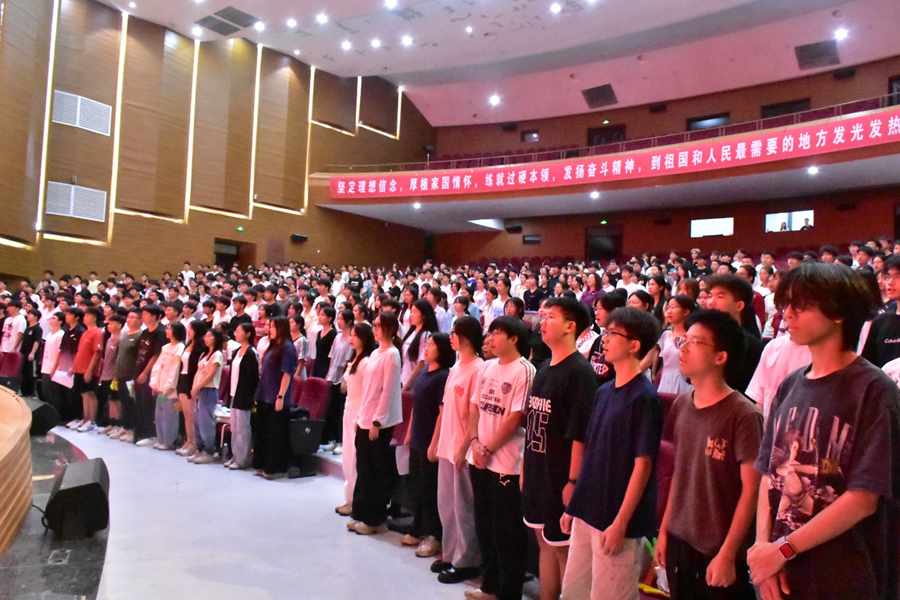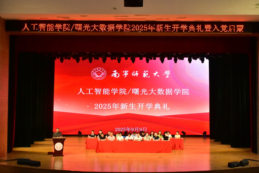 9月9日,人工智能学院在音舞楼1号演播厅举办主题为“逐光AI时代,启航青春新篇”的2025级新生开学典礼暨入学教育。学院领导、系主任、新生班主任、全体辅导员和2025级500余名新生齐聚现场。