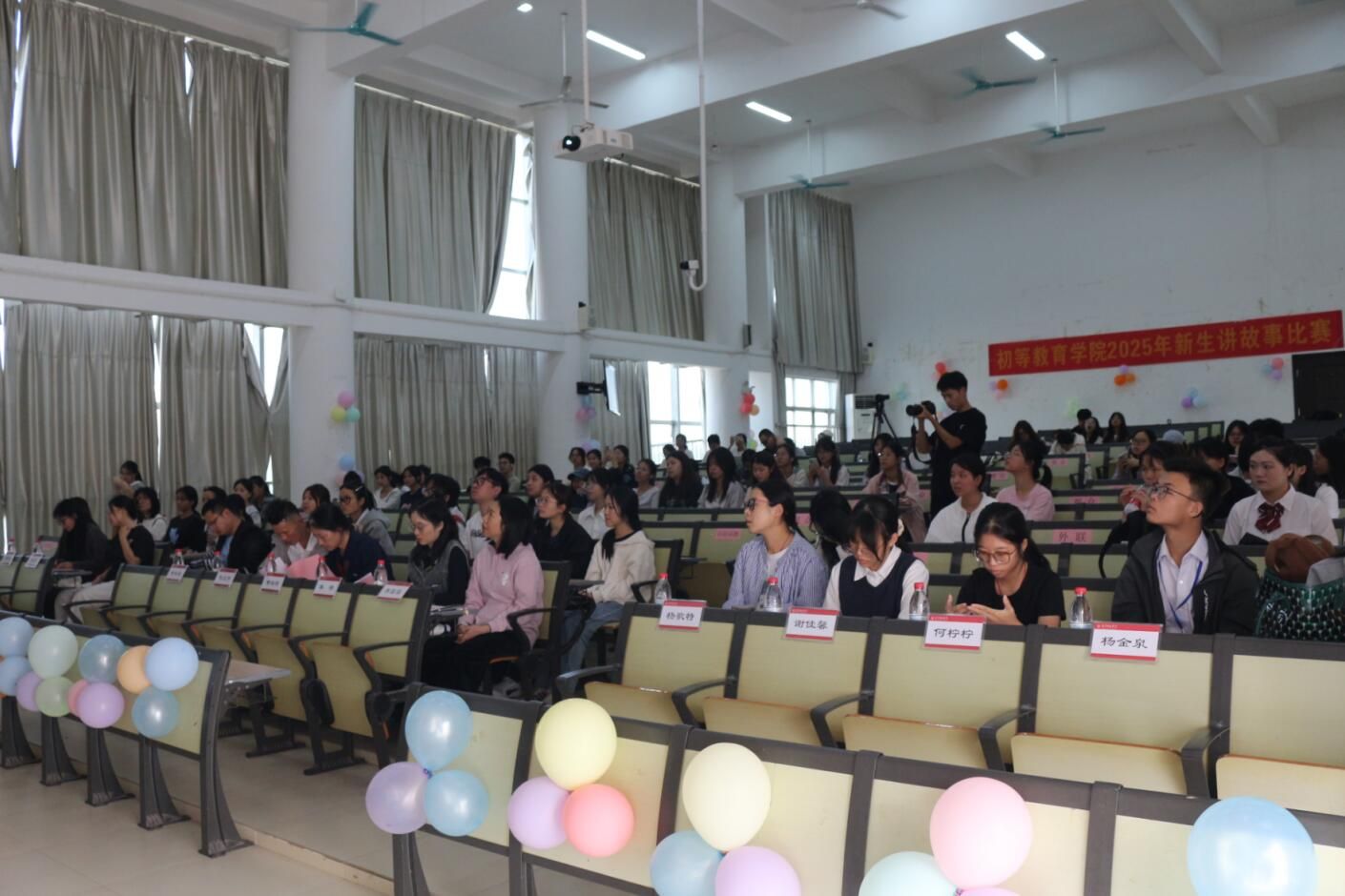 10月28日下午,初等教育学院在五合校区综合教学楼308教室举办2025年新生讲故事比赛。此次比赛评委由初等教育学院黄海燕老师、学工办辅导员李露露、秦晴和韦文平担任。五合校区兄弟学院代表、各社团代表及学院2025年新生共同参与。