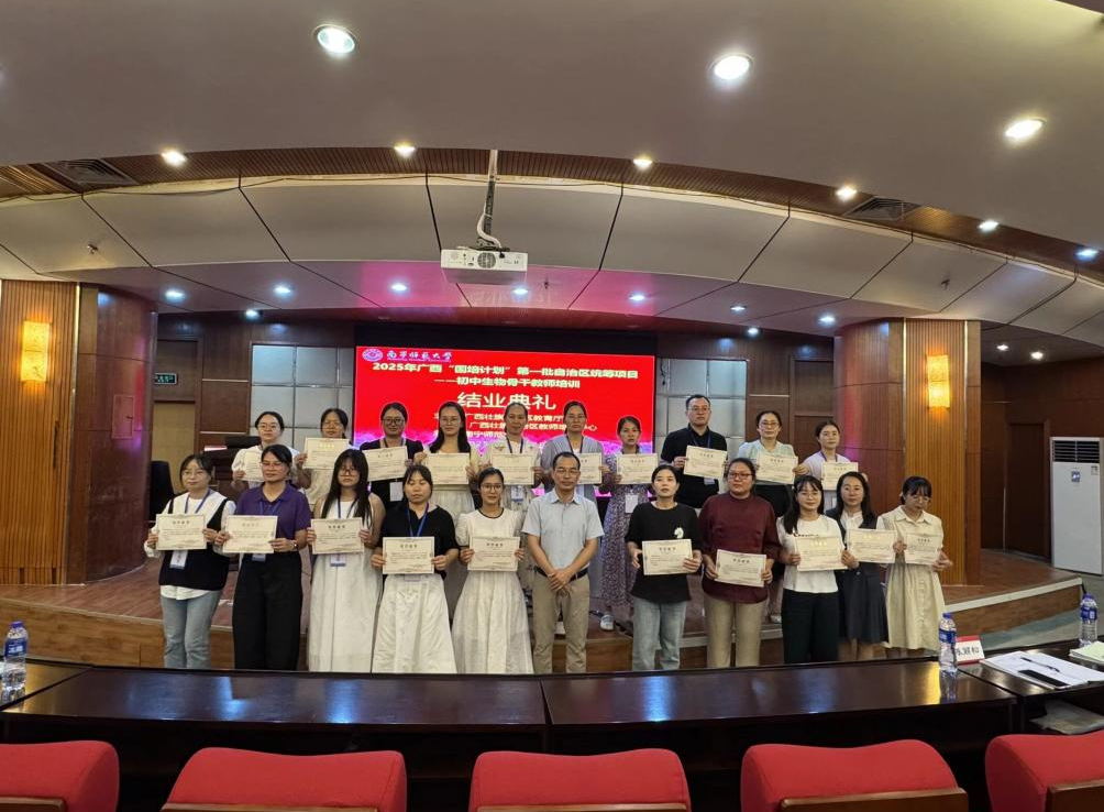 由广西壮族自治区教育厅、广西壮族自治区教师培训中心主办、南宁师范大学环境与生命科学学院承办的为期十天的广西2025年“国培计划”自治区第一批统筹项目——初中生物骨干教师培训项目班于10月18日圆满结业。南宁师范大学环境与生命科学学院党委书记韦东林出席结业典礼。