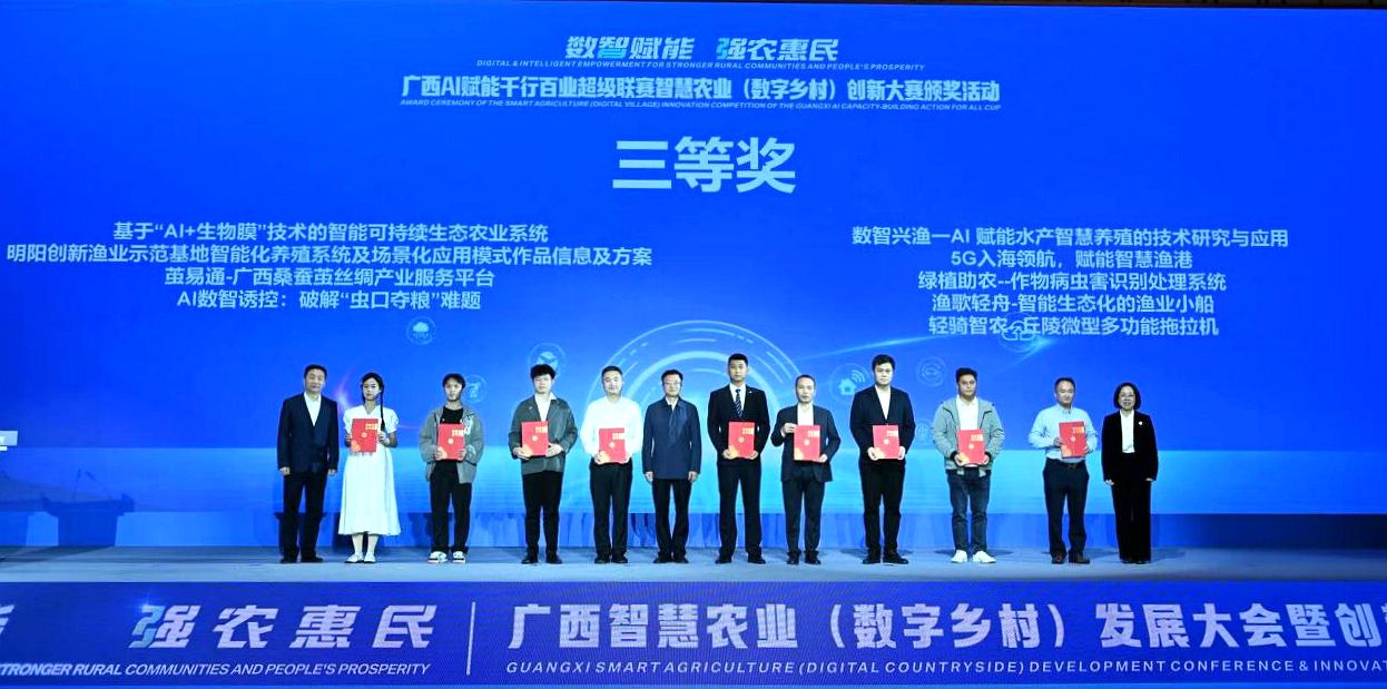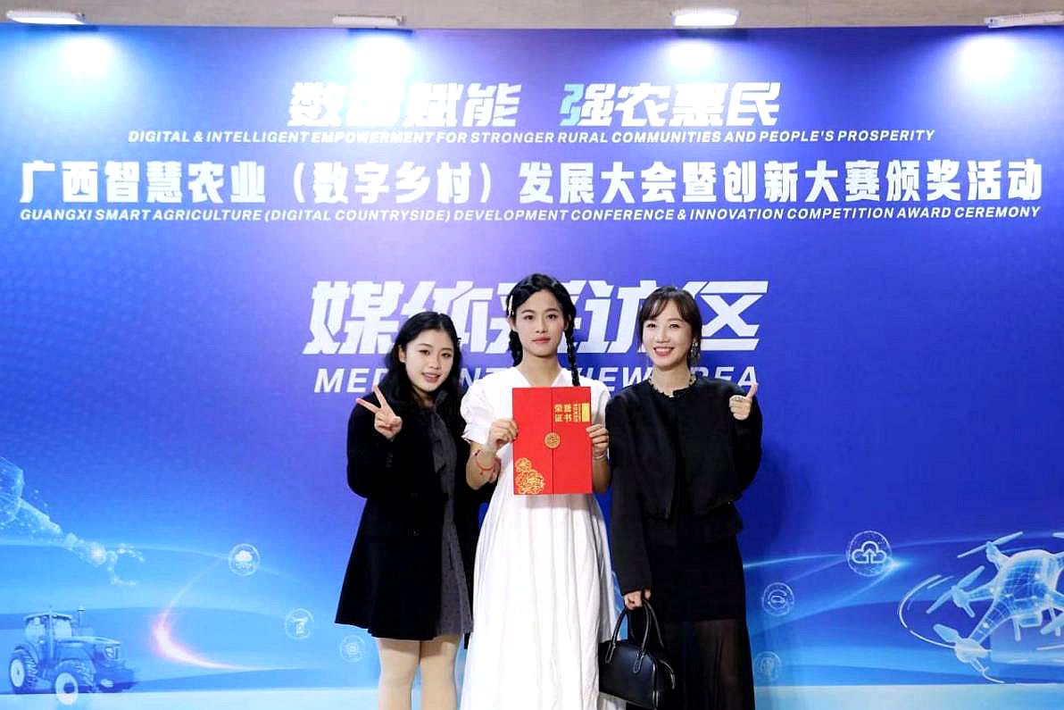 11月5日,由广西壮族自治区农业农村厅、自治区党委网信办主办的“数智赋能、强农惠民”AI赋能千行百业超级联赛智慧农业(数字乡村)创赛大赛颁奖典礼在南宁市国际会展中心隆重举行,国际教育学院入围总决赛的项目团队斩获三等奖,展现了我校在创新性、跨学科性与国际化的育人成效。