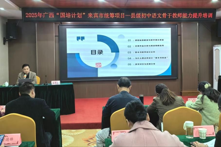 此次培训紧扣初中语文教学核心需求,整合优质教育资源,为来宾市县级初中语文骨干教师搭建了学习交流与专业提升的平台。参训教师纷纷表示,将把培训所学融入日常教学,切实发挥骨干教师的示范引领作用,为当地基础教育高质量发展注入新动力。