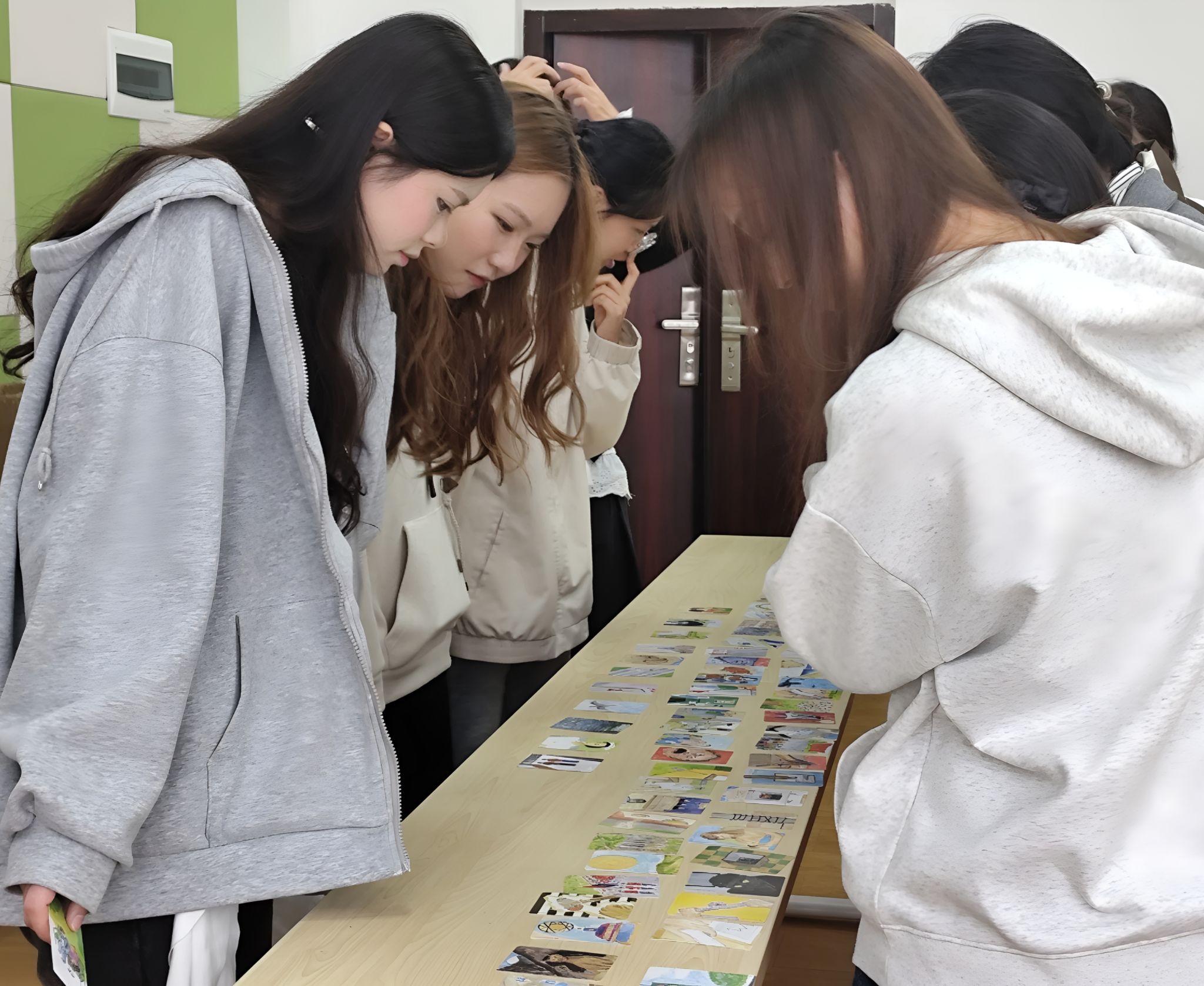 活动围绕“认知—觉察—行动—分享”的逻辑主线,精心设计了五个层层深入、形式活泼的互动环节。“丢球破冰”游戏以轻松有趣的方式迅速拉近彼此距离,同学们在接球与自我介绍中快速融入团体;“打开爱的指南”环节,大家通过选择与解读图卡,尽情表达对爱情的初步理解与情感联想;“查看爱的索引”借助OH卡牌工具,帮助学生在喜欢与不喜欢的分类梳理中,清晰觉察自身情感偏好与内在心理需求;“解锁爱的地图”引导学生从卡牌启示中提炼行动方向,深入思考如何在实际生活中满足自我情感需要;最后的“收获爱的箴言”环节,同学们互赠卡牌、传递祝福,在真诚交流中凝结团体情感,深化心灵共鸣。整场活动中,同学们在安全、支持的氛围里坦诚表达、认真倾听,在互动体验中不断深化对爱情与自我的认知。