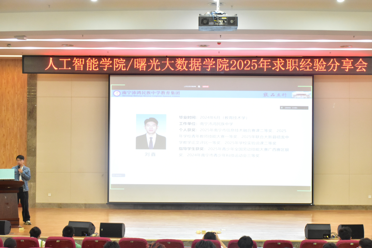 为帮助同学们获取求职实战指导、借鉴有效经验,并精准把握不同行业赛道的招聘标准与职场生态,12月2日,人工智能学院在图书馆报告厅举行2025年求职经验分享会。学院邀请优秀毕业生刘鑫、李奇晋担任主讲,辅导员宋宏斌、林雪及2023级全体学生参加活动。