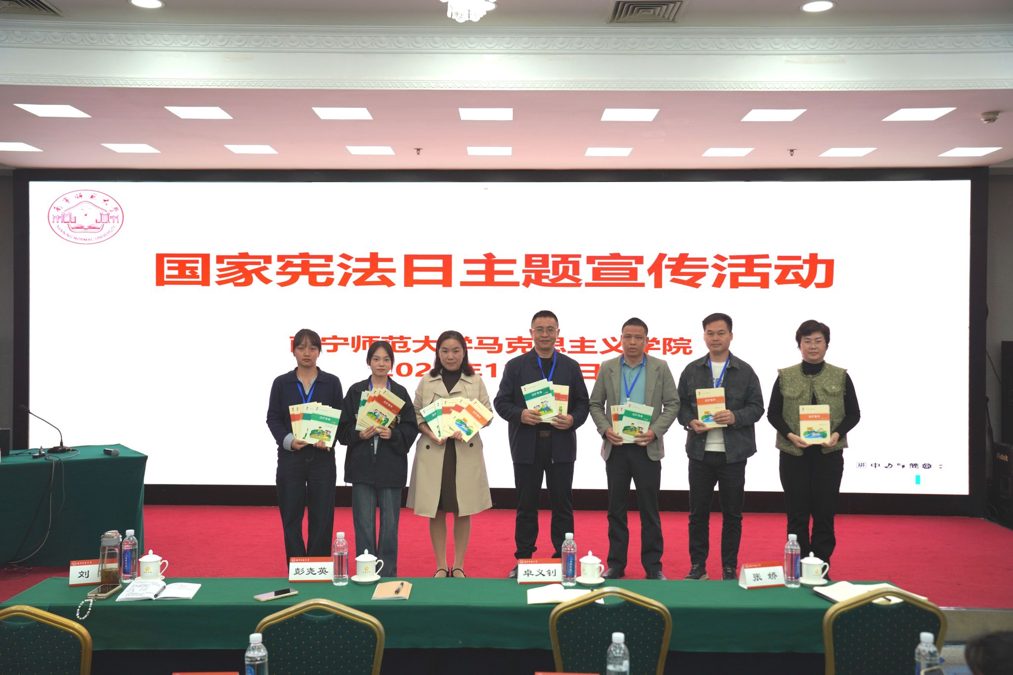 为进一步丰富培训内容,提高教师法治意识,提升教师法治素养,12月4日,马克思主义学院为2025年全区中小学铸牢中华民族共同体意识教育融入学科教学骨干教师培训班全体学员赠送5册法律通俗读物书籍。