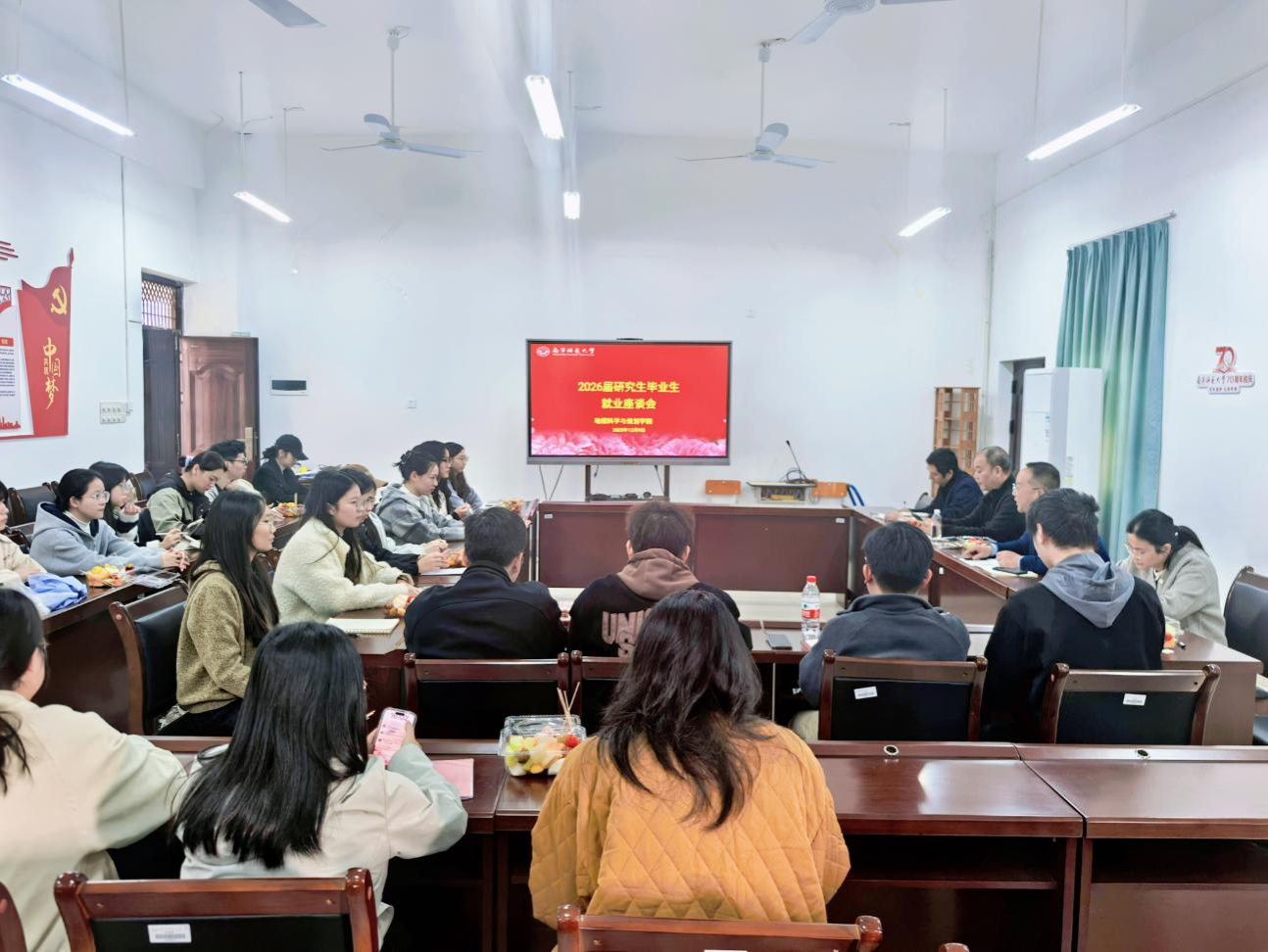 为切实做好2026届研究生就业指导工作,帮助毕业生明确就业方向、解决求职困惑,地理科学与规划学院于近日组织召开2026届研究生毕业生就业座谈会。学院党委书记严志强、副书记盛凯、副院长罗国玮出席会议,学工办辅导员李洁柳、农宇鹏以及2026届研究生毕业生代表参加座谈会。