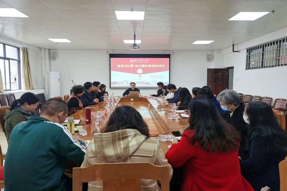 在专题讲座中,杨绪明院长作了《科研项目申报指导》专题报告,系统分享了国家级、省部级科研项目申报的策略、要点与常见问题解析;曾少林博士以《教学与比赛:助力青年教师的成长》为题,结合具体案例阐述了教学竞赛对教师专业发展的推动机制;蒋招凤副院长则围绕《三位一体协同育人:国际教育背景下专业实习实践、教学改革与课程建设的融合路径》展开论述,提出了富有建设性的融合育人模式。