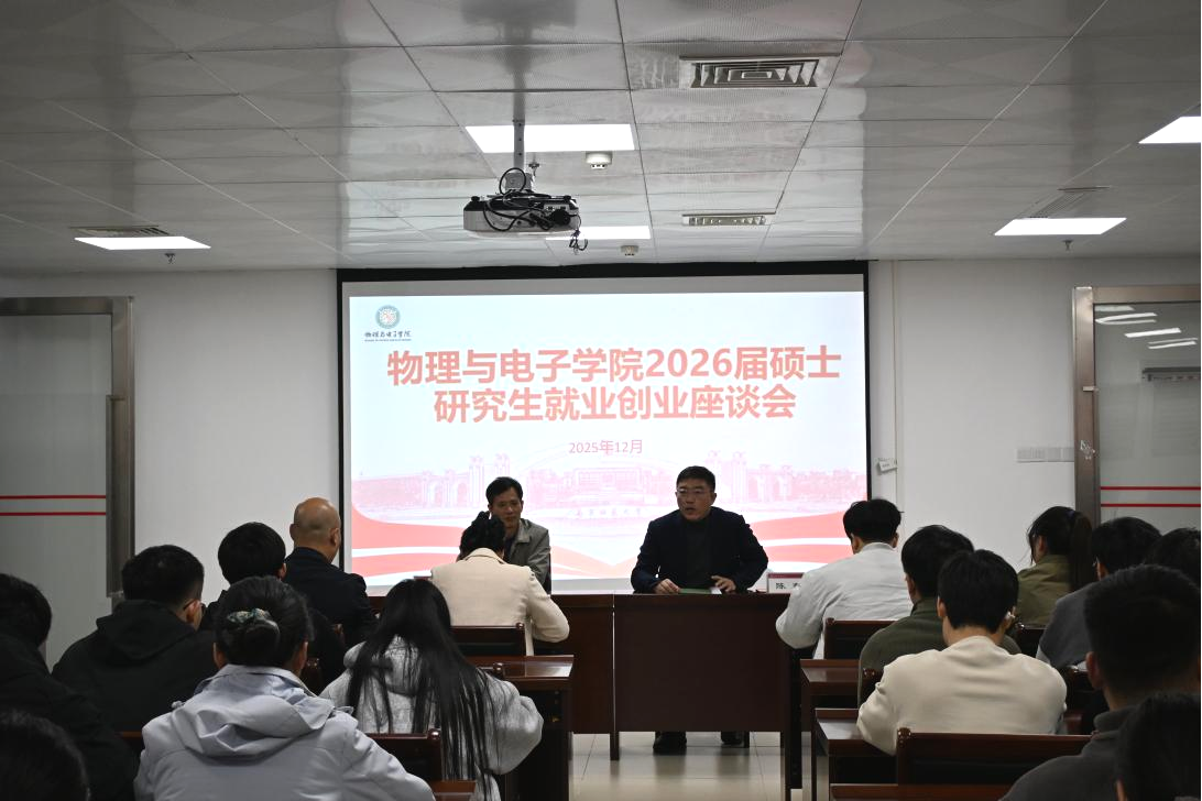 为切实做好2026届研究生就业创业工作,帮助同学们了解就业形势、转变择业观念,12月16日,物理与电子学院在武鸣校区实验楼3-1517会议室召开研究生就业促进交流会。学院院长陈东,党委副书记农保雄、何聪,副院长李光明,就业指导老师及2023届研究生参加会议。