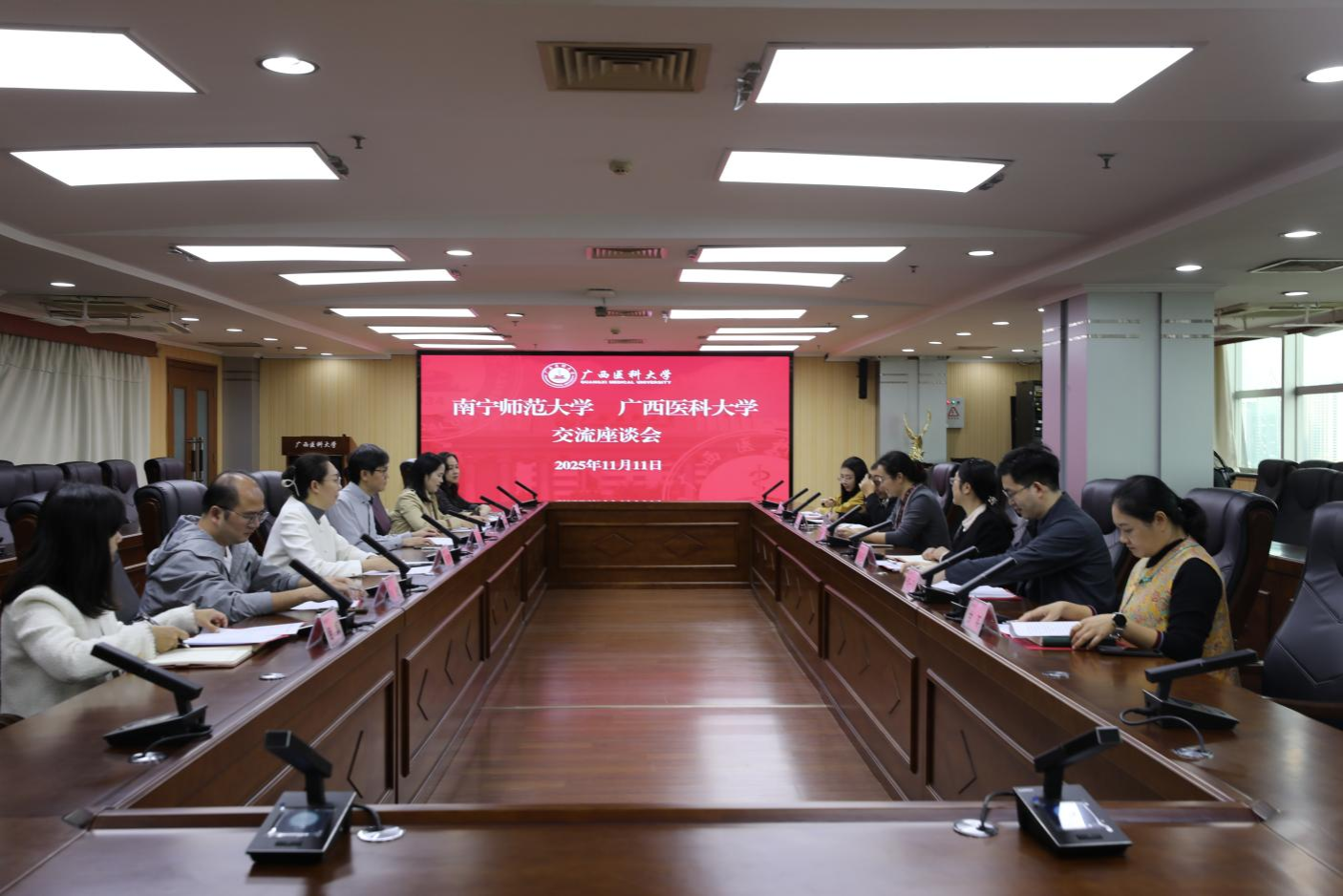 座谈会上,广西医科大学党校办于夫副主任对调研组一行表示热烈欢迎,结合宣传片介绍了学校发展概况,表达了进一步加强校际联系、深化交流互鉴、促进共同发展的意向。我校国内合作处长区丽媛介绍了学校发展概况与本部门基本情况,并对广西医科大学长期以来在多领域给予我校的宝贵支持表示感谢。她表示,此次调研旨在通过对标学习区内先进高校的成熟经验与创新做法,重点围绕国内合作机制、校友联络服务、工会职能发挥以及附属幼儿园规范运营等议题进行交流,希望通过此次面对面学习,为我校相关工作开拓思路、提供借鉴。