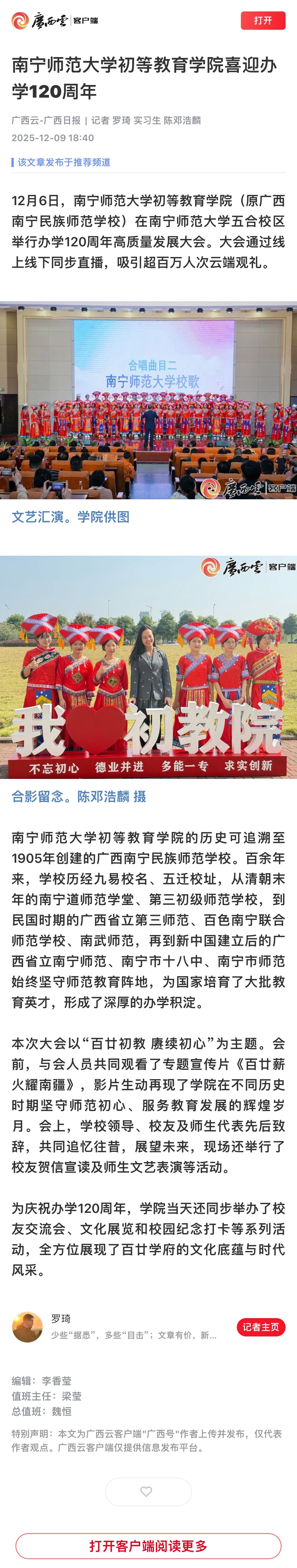 【广西云】南宁师范大学初等教育学院喜迎办学120周年