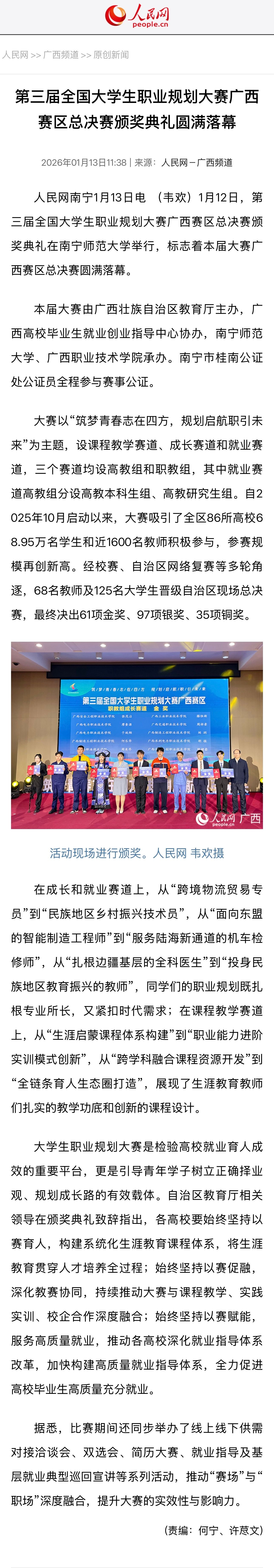 【人民网】第三届全国大学生职业规划大赛广西赛区总决赛颁奖典礼圆满落幕