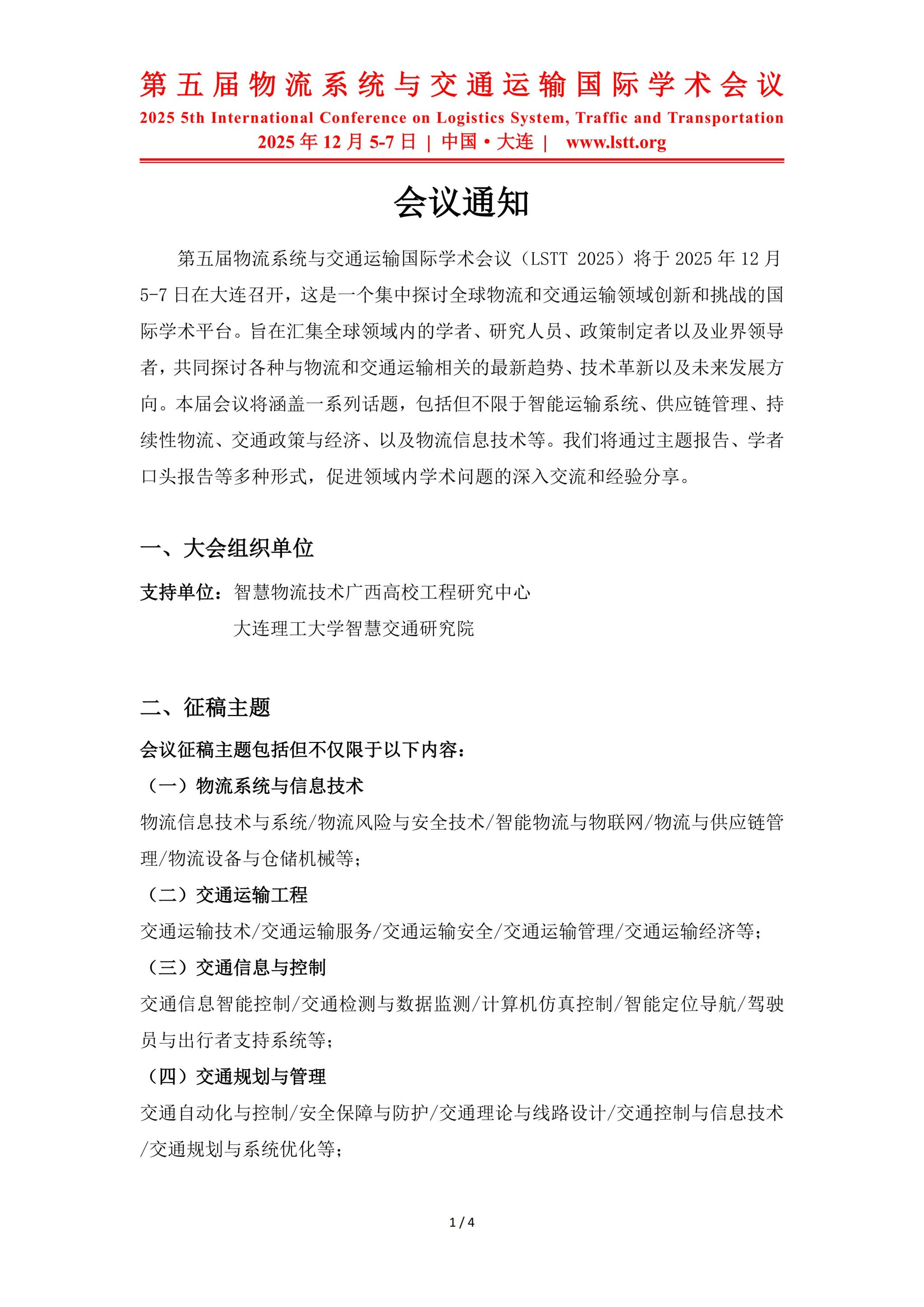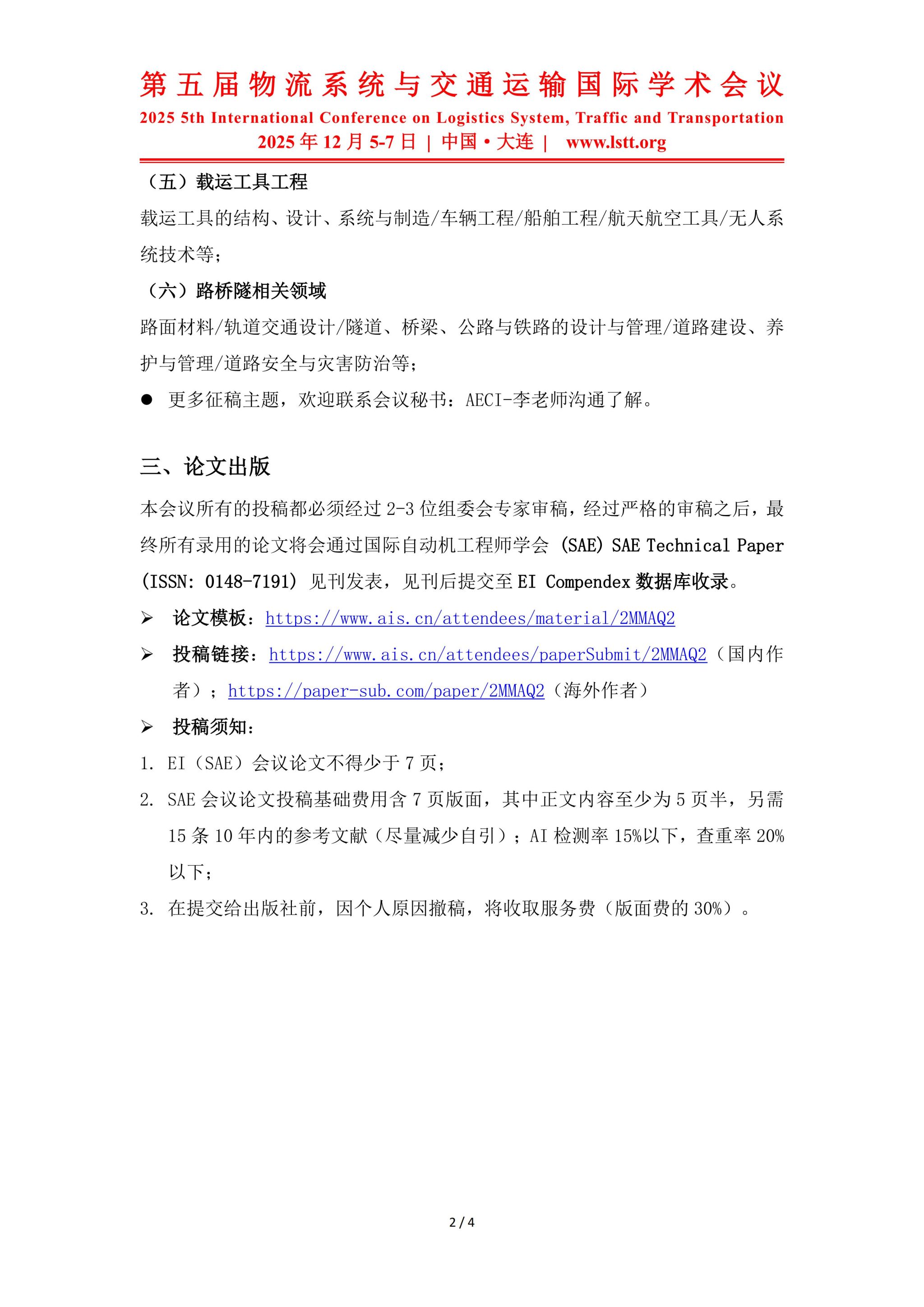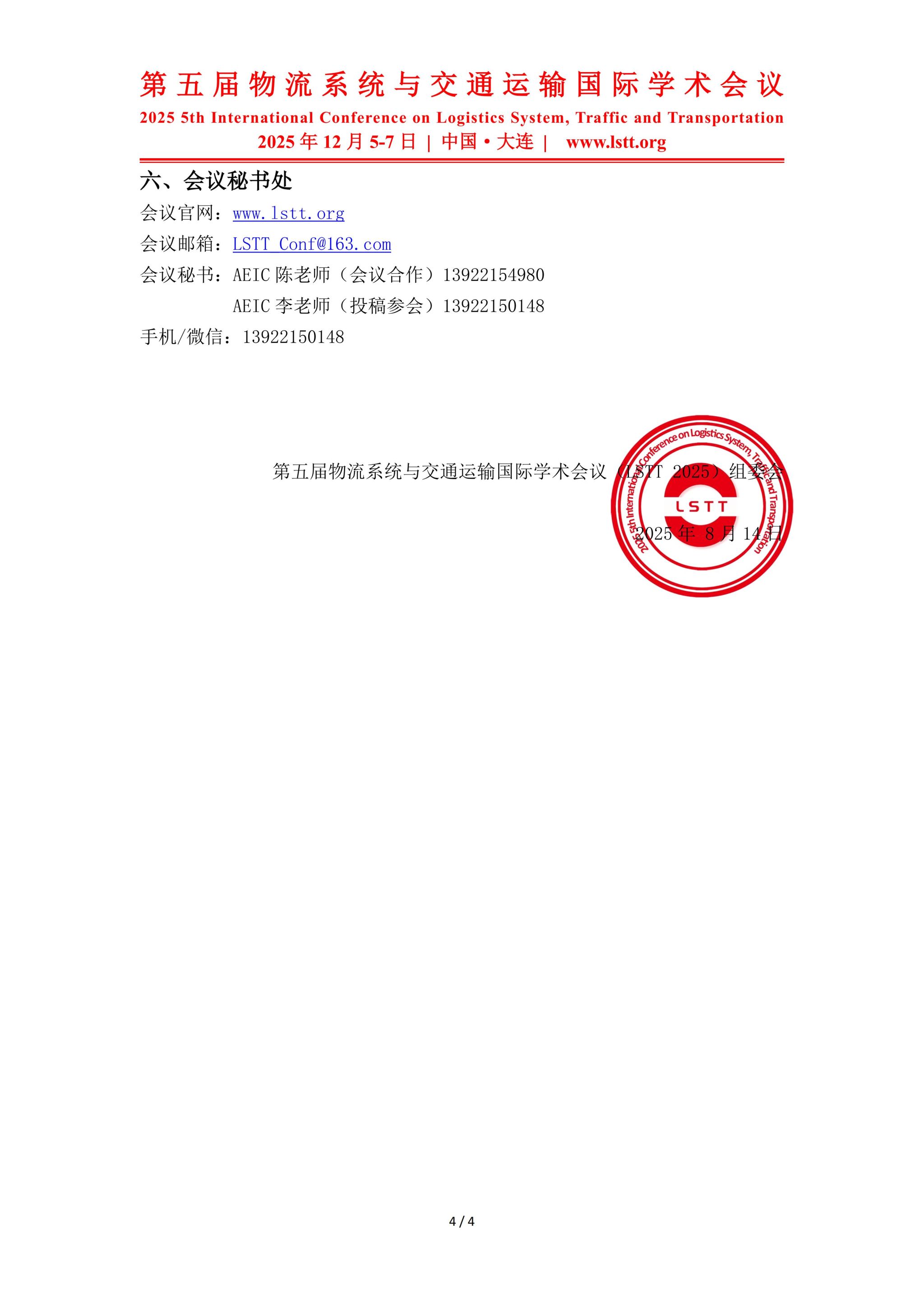 作者:第五届物流系统与交通运输国际学术会议(LSTT 2025)组委会